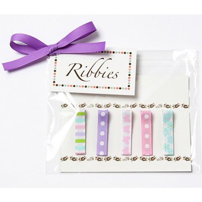 The Hallie Ribbies Clippies Gift Set contains five lightweight hair clips featuring adorable grosgrain ribbon patterns. The simple design (no clasps or magnets) makes these hair accessories easy to put in. A color-coordinated foam grip keeps these ribbon clips in place in all hair types, from fine baby hair to thick curls.